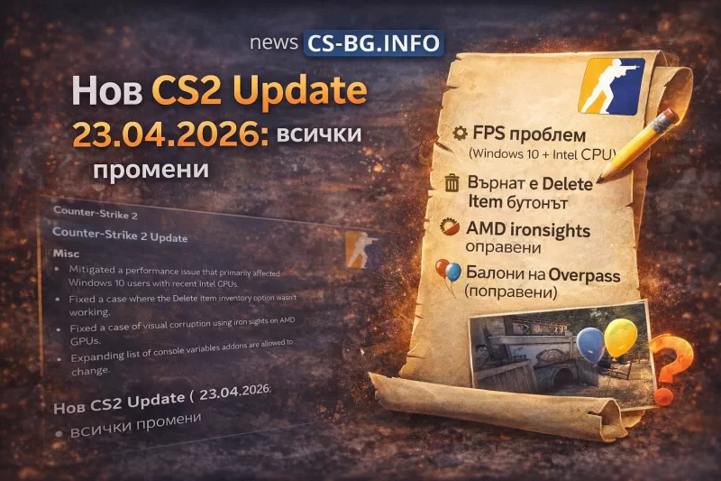 Valve пусна малък hotfix за Counter-Strike 2, който не променя баланса, а чисти няколко неприятни проблема: FPS спадове при определена конфигурация, бъг с изтриването на предмети, визуален проблем при AMD и дребна поправка на Overpass.